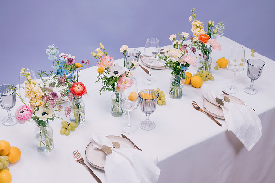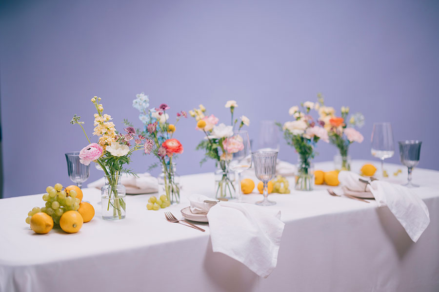 • kimput/asetelmat vieraiden pöytiin (10 kpl) tai kukkaisat pöytäköynnökset (10kpl)