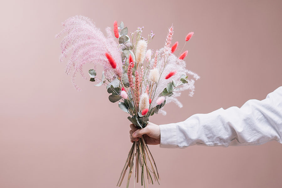 Signature bouquet for Valentine made from dried flowers. Like its sister in the fresh bouquets, this one is inspired by Ukiyo-e artist Hokusai’s work Fujiyama, “Mount Fuji with Cherry Trees in Bloom” (1805). An artistic gesture to delight an inspiring mind!