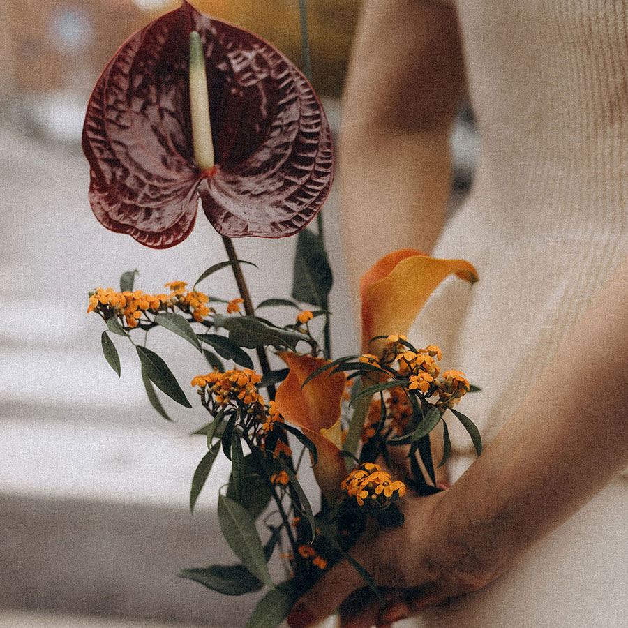 WEDDING FLOWERS PLAY A SIGNIFICANT ROLE IN TRANSFORMING THE SPACE AND CREATING THE ATMOSPHERE OF THE DAY. WE ARE DEDICATED TO CREATING, TO TELLING YOUR STORY THROUGH MEMORABLE DESIGNS. FROM A WEDDING BOUQUET TO TABLE ARRANGEMENT, WHETHER YOU PREFER SIMPLE, LAIDBACK STYLE, OR DREAM OF A SPLENDID, CAPTIVATING FLORAL INSTALLATION, WE WILL MAKE IT A CELEBRATION TO REMEMBER.